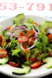 Onions, olives, mushrooms, green peppers, tomatoes.